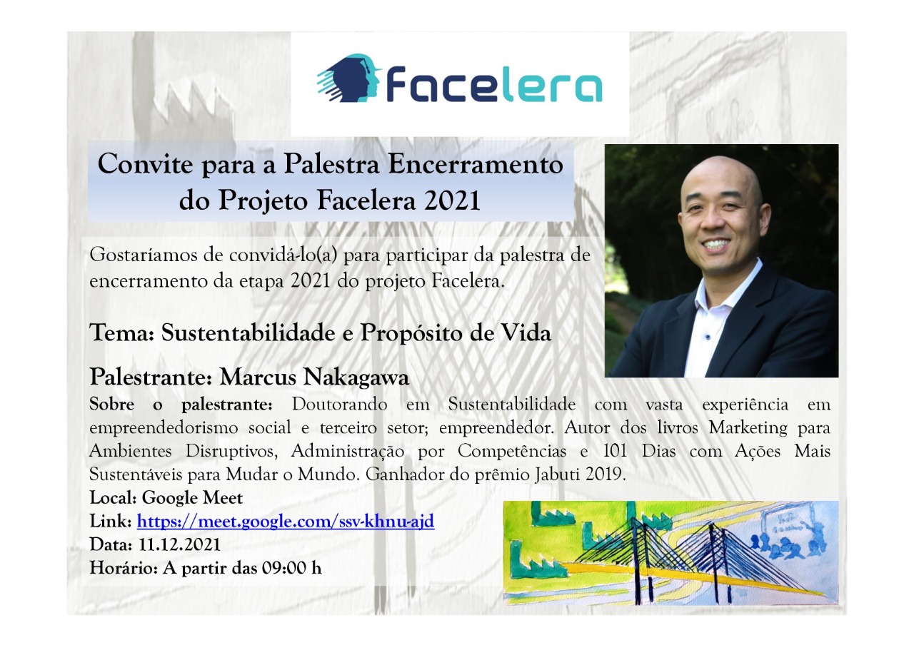 Convite para a Palestra Encerramento do Projeto Facelera 2021 06/12/2021 / By fmaua / Notícias, Notícias Compartilhe